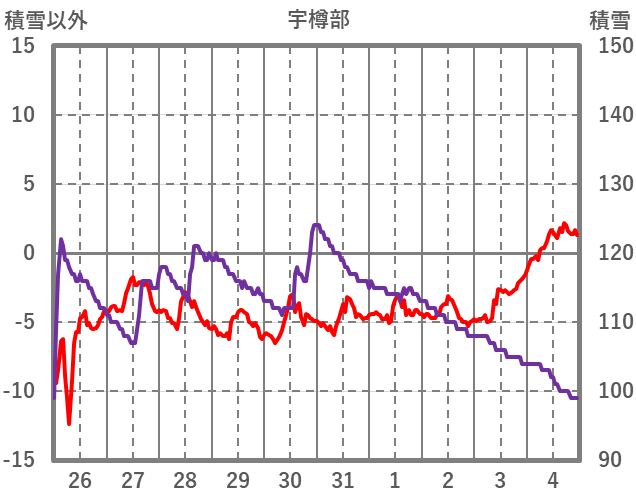 | 日 | 時 | 気温 | 降水 | 風向/風速 | 日照 | 積雪 | 降雪 |