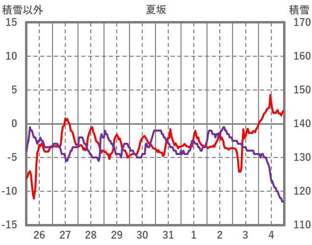 | 日 | 時 | 気温 | 降水 | 風向/風速 | 日照 | 積雪 | 降雪 |