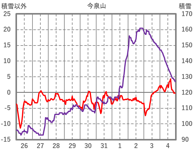 | 日 | 時 | 気温 | 降水 | 風向/風速 | 日照 | 積雪 | 降雪 |