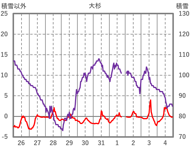 | 日 | 時 | 気温 | 降水 | 風向/風速 | 日照 | 積雪 | 降雪 |