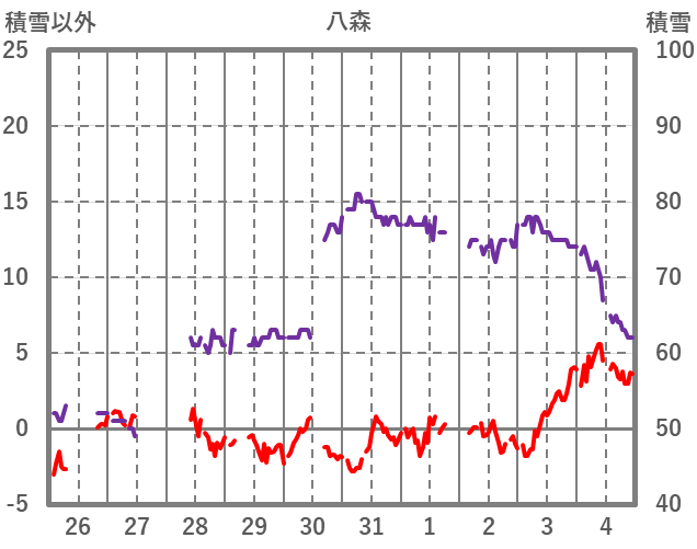 | 日 | 時 | 気温 | 降水 | 風向/風速 | 日照 | 積雪 | 降雪 |