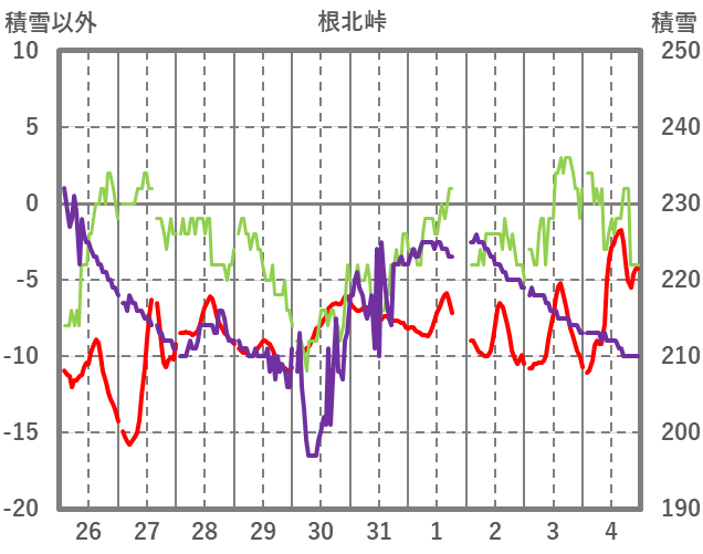 | 4 | 23 | -4.3 | 0 | NNW/4 | 210 | 0 | |