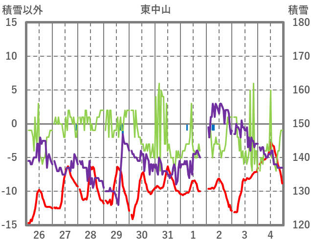 | 日 | 時 | 気温 | 降水 | 風向/風速 | 日照 | 積雪 | 降雪 |