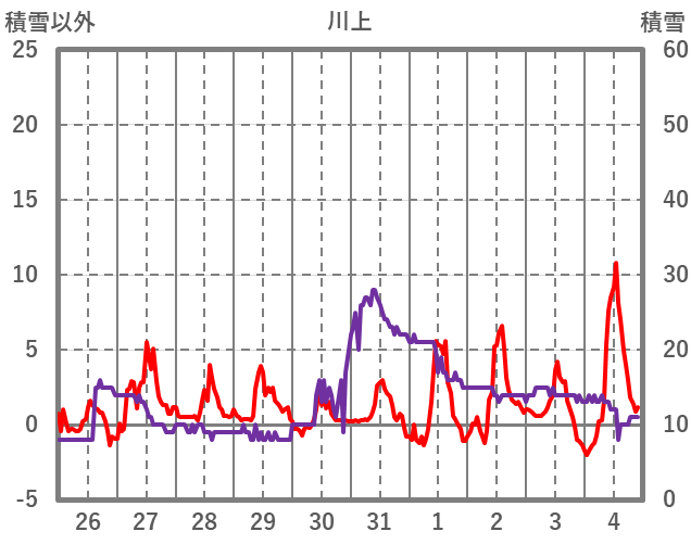 | 日 | 時 | 気温 | 降水 | 風向/風速 | 日照 | 積雪 | 降雪 |