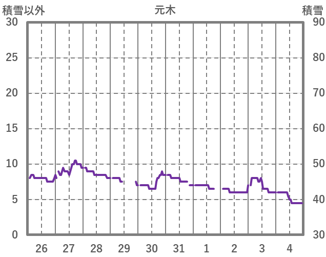 | 日 | 時 | 気温 | 降水 | 風向/風速 | 日照 | 積雪 | 降雪 |