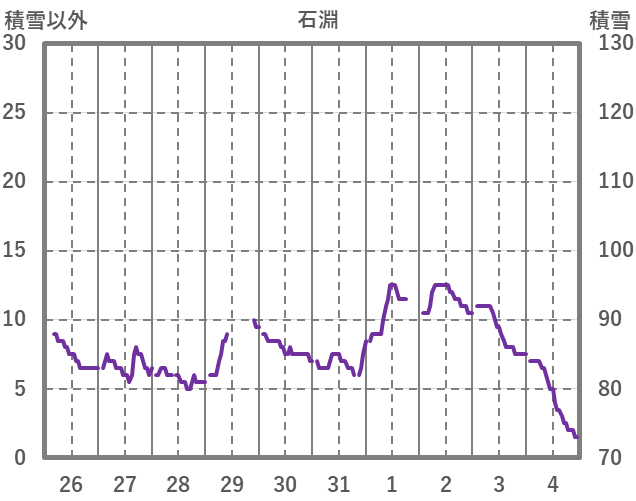 | 日 | 時 | 気温 | 降水 | 風向/風速 | 日照 | 積雪 | 降雪 |