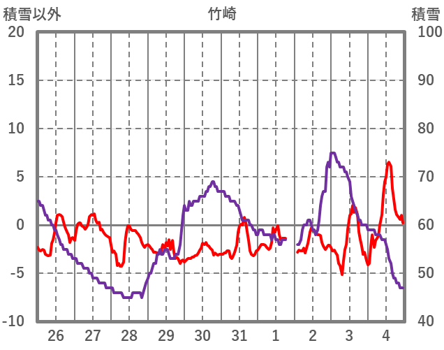| 日 | 時 | 気温 | 降水 | 風向/風速 | 日照 | 積雪 | 降雪 |