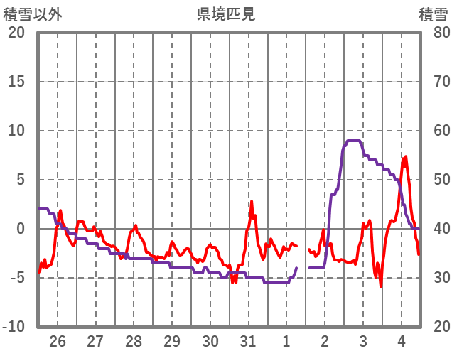 | 日 | 時 | 気温 | 降水 | 風向/風速 | 日照 | 積雪 | 降雪 |