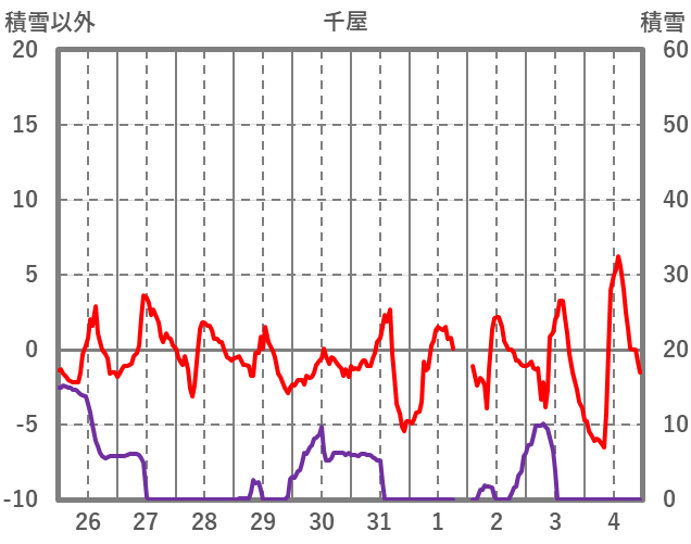 | 日 | 時 | 気温 | 降水 | 風向/風速 | 日照 | 積雪 | 降雪 |