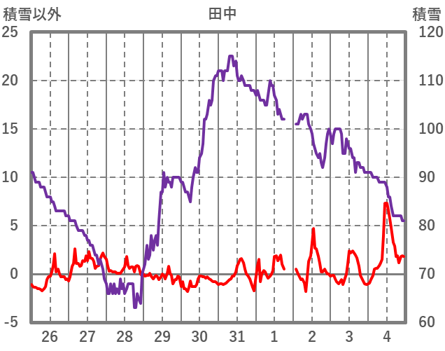 | 日 | 時 | 気温 | 降水 | 風向/風速 | 日照 | 積雪 | 降雪 |