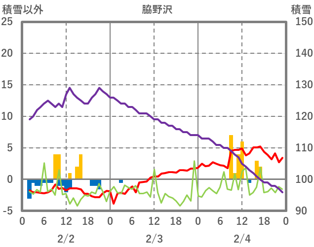 | 日 | 時 | 気温 | 降水 | 風向/風速 | 日照 | 積雪 | 降雪 |