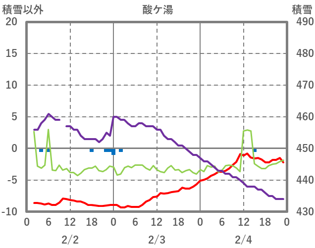 | 日 | 時 | 気温 | 降水 | 風向/風速 | 日照 | 積雪 | 降雪 |
