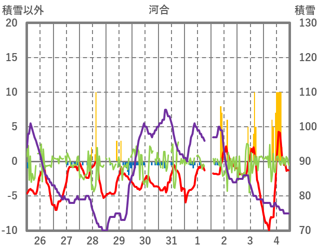 | 日 | 時 | 気温 | 降水 | 風向/風速 | 日照 | 積雪 | 降雪 |