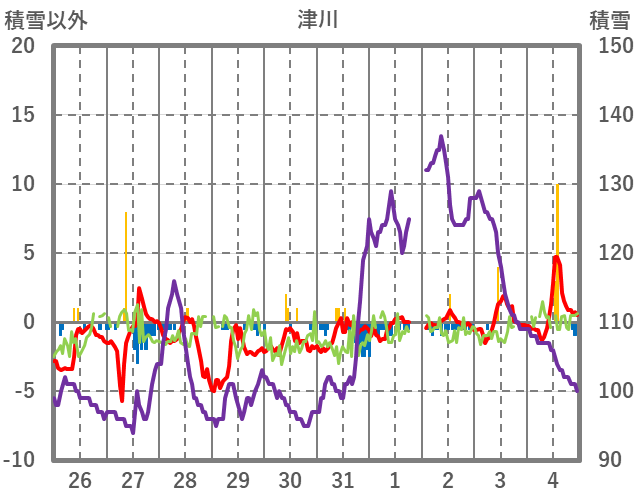 | 日 | 時 | 気温 | 降水 | 風向/風速 | 日照 | 積雪 | 降雪 |