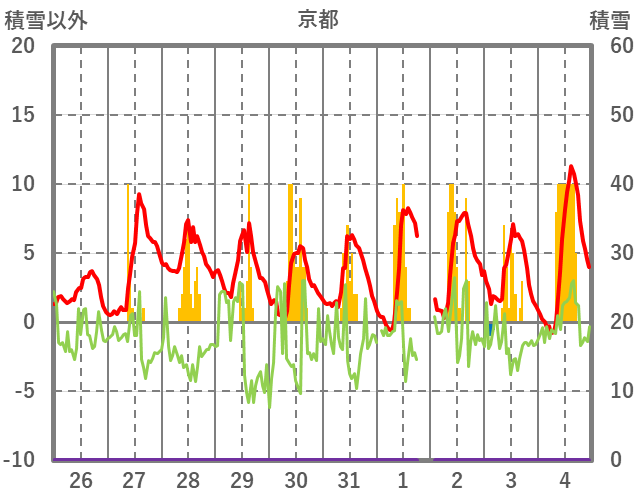 | 日 | 時 | 気温 | 降水 | 風向/風速 | 日照 | 積雪 | 降雪 |