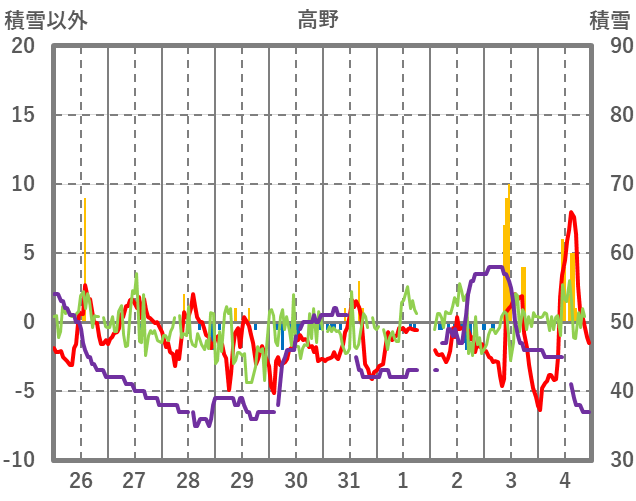 | 日 | 時 | 気温 | 降水 | 風向/風速 | 日照 | 積雪 | 降雪 |