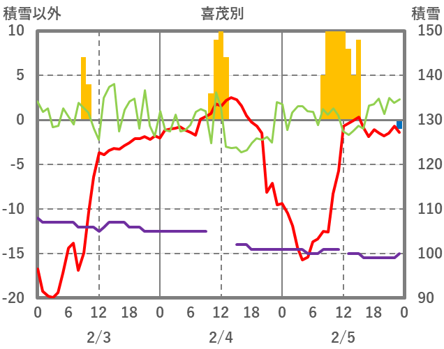 | 日 | 時 | 気温 | 降水 | 風向/風速 | 日照 | 積雪 | 降雪 |