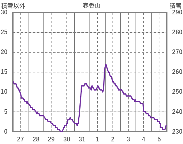 | 日 | 時 | 気温 | 降水 | 風向/風速 | 日照 | 積雪 | 降雪 |