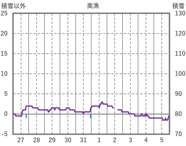 | 日 | 時 | 気温 | 降水 | 風向/風速 | 日照 | 積雪 | 降雪 |