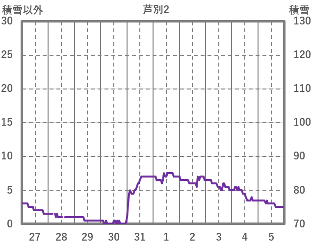 | 日 | 時 | 気温 | 降水 | 風向/風速 | 日照 | 積雪 | 降雪 |