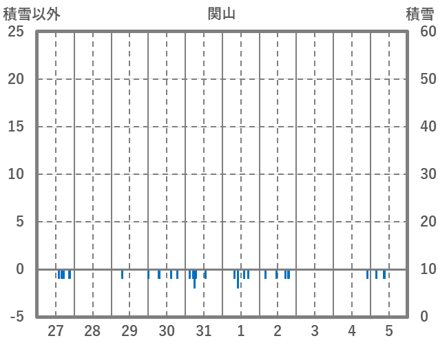 | 日 | 時 | 気温 | 降水 | 風向/風速 | 日照 | 積雪 | 降雪 |