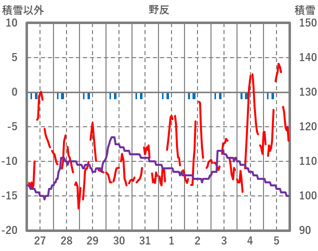 | 日 | 時 | 気温 | 降水 | 風向/風速 | 日照 | 積雪 | 降雪 |