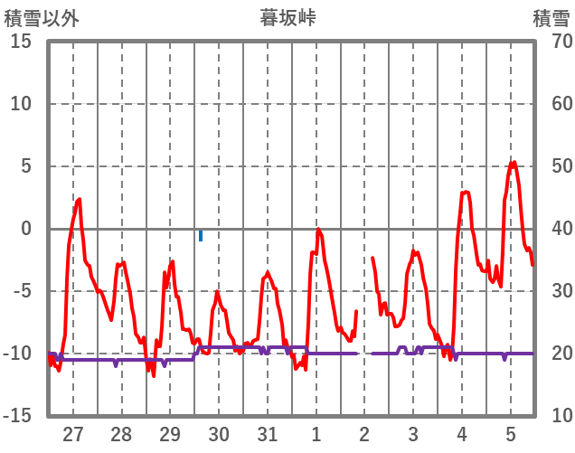 | 日 | 時 | 気温 | 降水 | 風向/風速 | 日照 | 積雪 | 降雪 |