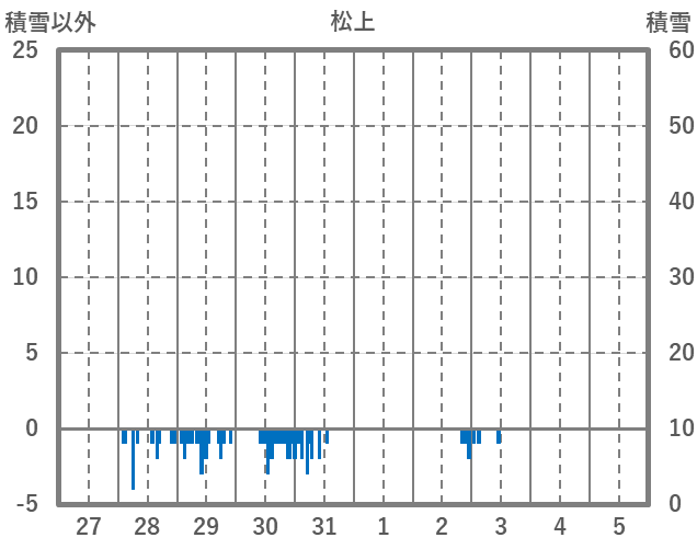 | 日 | 時 | 気温 | 降水 | 風向/風速 | 日照 | 積雪 | 降雪 |