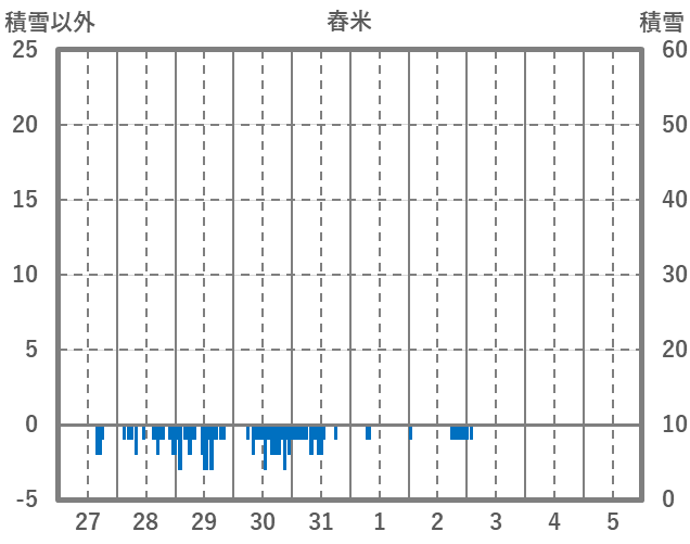 | 日 | 時 | 気温 | 降水 | 風向/風速 | 日照 | 積雪 | 降雪 |