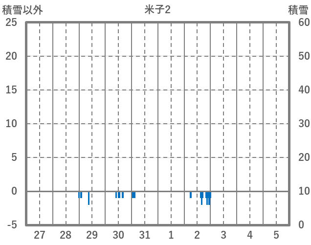 | 日 | 時 | 気温 | 降水 | 風向/風速 | 日照 | 積雪 | 降雪 |
