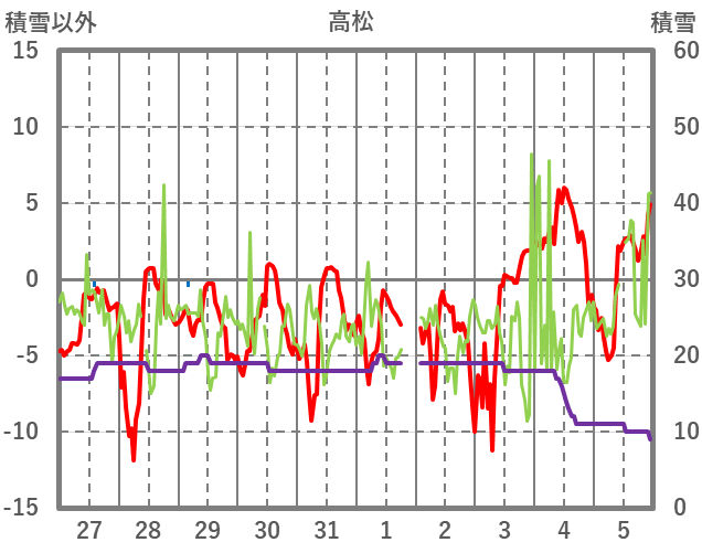 | 日 | 時 | 気温 | 降水 | 風向/風速 | 日照 | 積雪 | 降雪 |