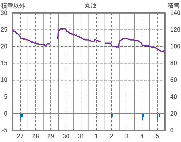 | 日 | 時 | 気温 | 降水 | 風向/風速 | 日照 | 積雪 | 降雪 |