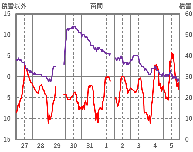 | 日 | 時 | 気温 | 降水 | 風向/風速 | 日照 | 積雪 | 降雪 |