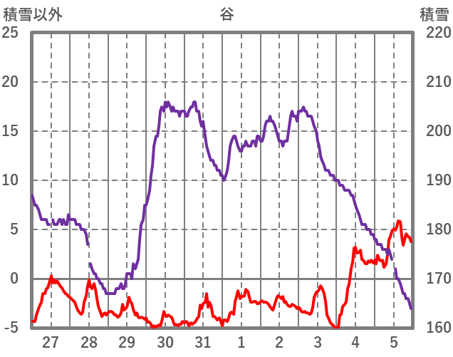 | 日 | 時 | 気温 | 降水 | 風向/風速 | 日照 | 積雪 | 降雪 |