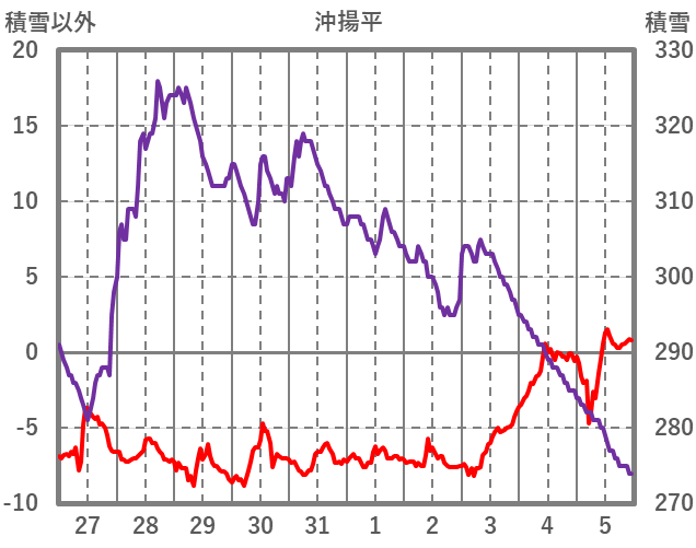 | 日 | 時 | 気温 | 降水 | 風向/風速 | 日照 | 積雪 | 降雪 |
