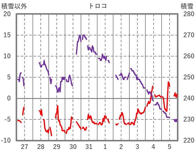 | 日 | 時 | 気温 | 降水 | 風向/風速 | 日照 | 積雪 | 降雪 |