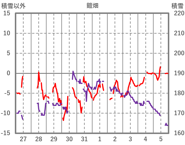 | 日 | 時 | 気温 | 降水 | 風向/風速 | 日照 | 積雪 | 降雪 |