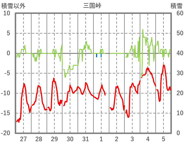 | 日 | 時 | 気温 | 降水 | 風向/風速 | 日照 | 積雪 | 降雪 |