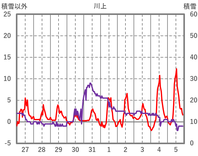| 日 | 時 | 気温 | 降水 | 風向/風速 | 日照 | 積雪 | 降雪 |