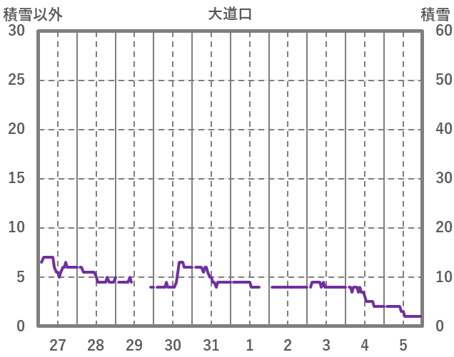 | 日 | 時 | 気温 | 降水 | 風向/風速 | 日照 | 積雪 | 降雪 |
