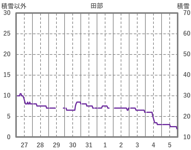 | 日 | 時 | 気温 | 降水 | 風向/風速 | 日照 | 積雪 | 降雪 |