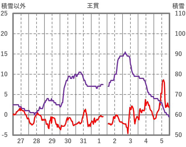 | 日 | 時 | 気温 | 降水 | 風向/風速 | 日照 | 積雪 | 降雪 |
