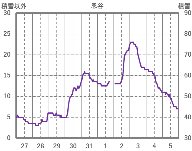 | 日 | 時 | 気温 | 降水 | 風向/風速 | 日照 | 積雪 | 降雪 |