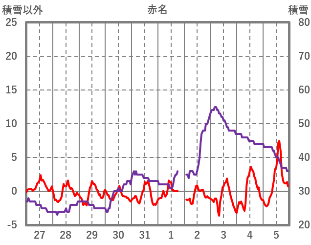 | 日 | 時 | 気温 | 降水 | 風向/風速 | 日照 | 積雪 | 降雪 |