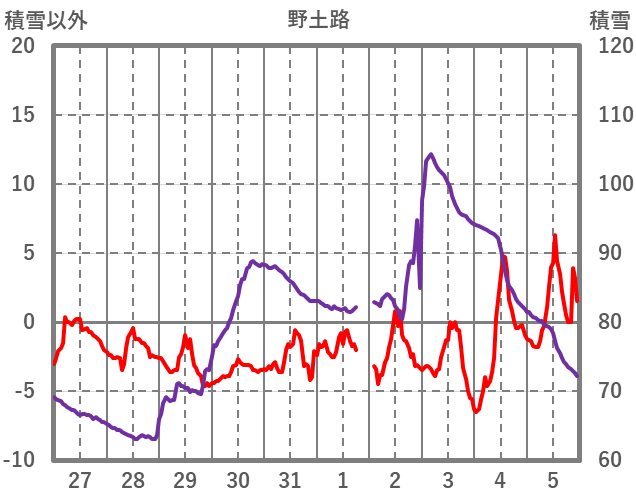 | 日 | 時 | 気温 | 降水 | 風向/風速 | 日照 | 積雪 | 降雪 |