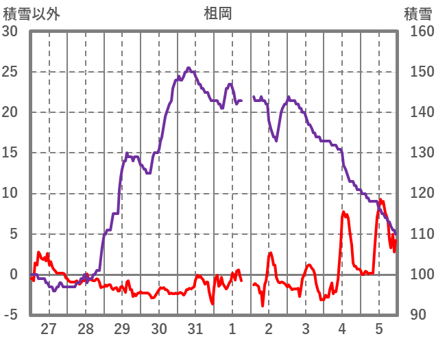 | 日 | 時 | 気温 | 降水 | 風向/風速 | 日照 | 積雪 | 降雪 |