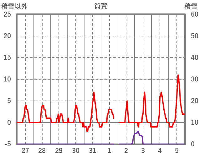 | 日 | 時 | 気温 | 降水 | 風向/風速 | 日照 | 積雪 | 降雪 |