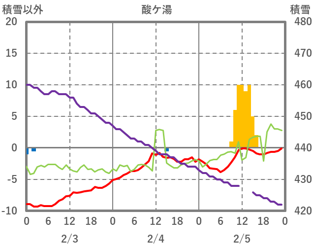 | 日 | 時 | 気温 | 降水 | 風向/風速 | 日照 | 積雪 | 降雪 |