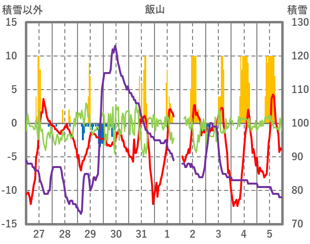 | 日 | 時 | 気温 | 降水 | 風向/風速 | 日照 | 積雪 | 降雪 |