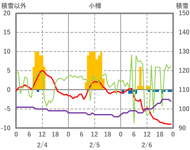| 日 | 時 | 気温 | 降水 | 風向/風速 | 日照 | 積雪 | 降雪 |